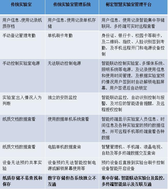 ▲传统实验室、传统实验室管理系统、彬宏智慧实验室管理效果对比